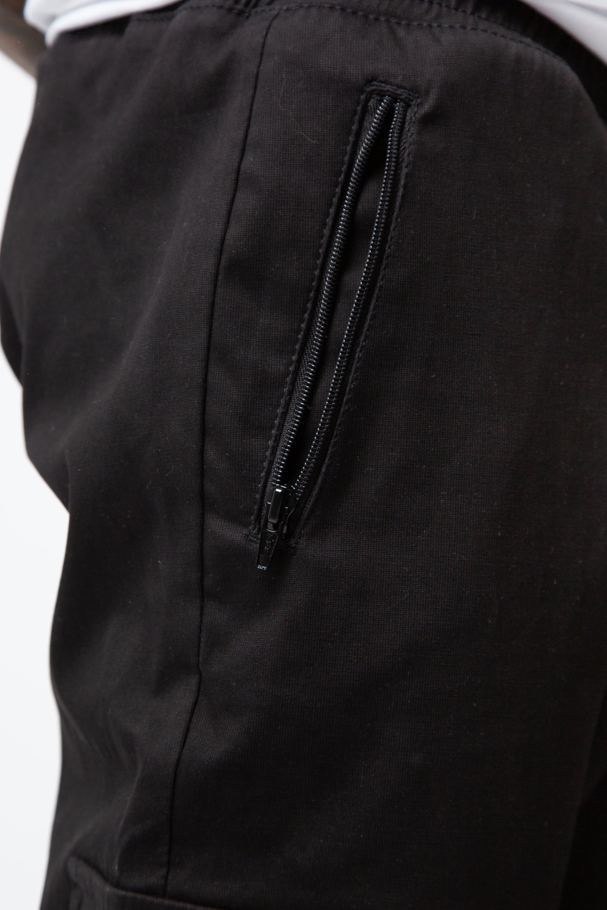 Classic black cuffed cargo styling, with elasticated cuff and elasticated waistband.