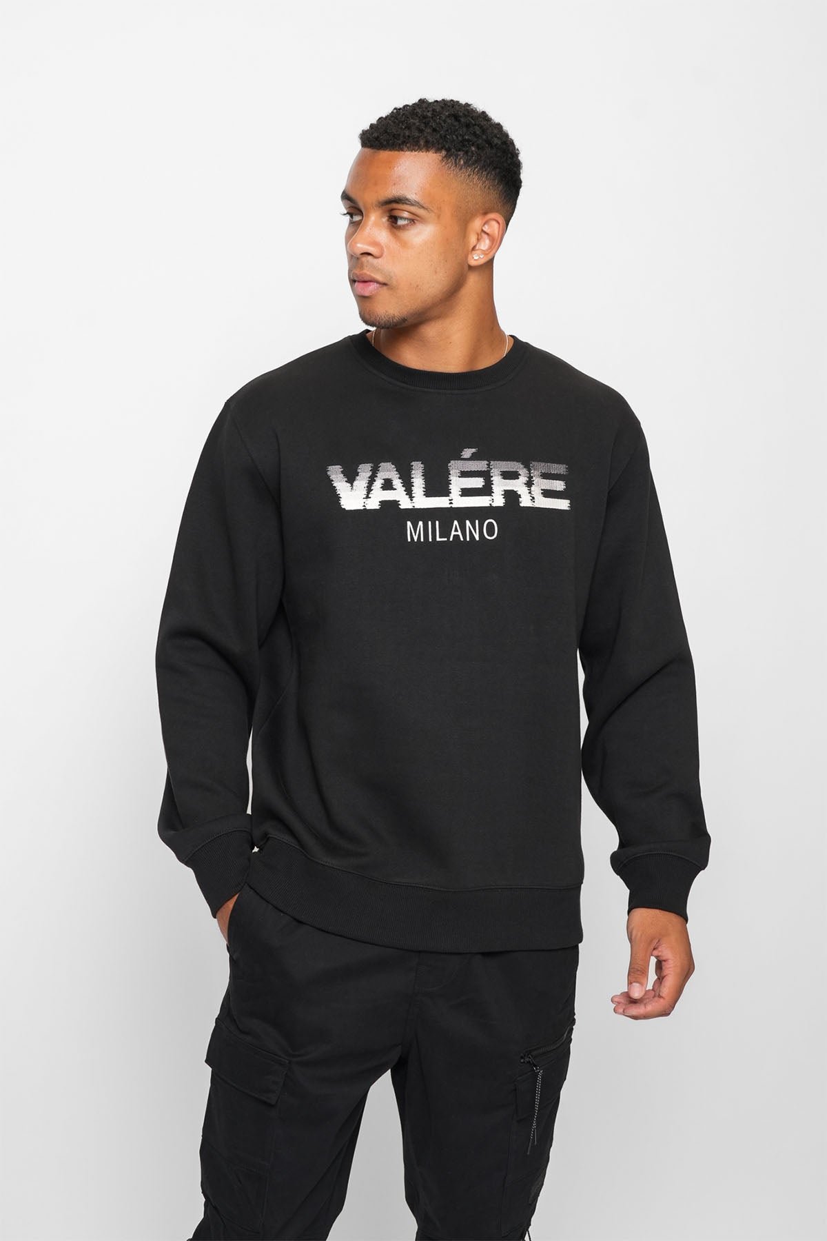 Black crew sweatshirt with branded high build embroidery