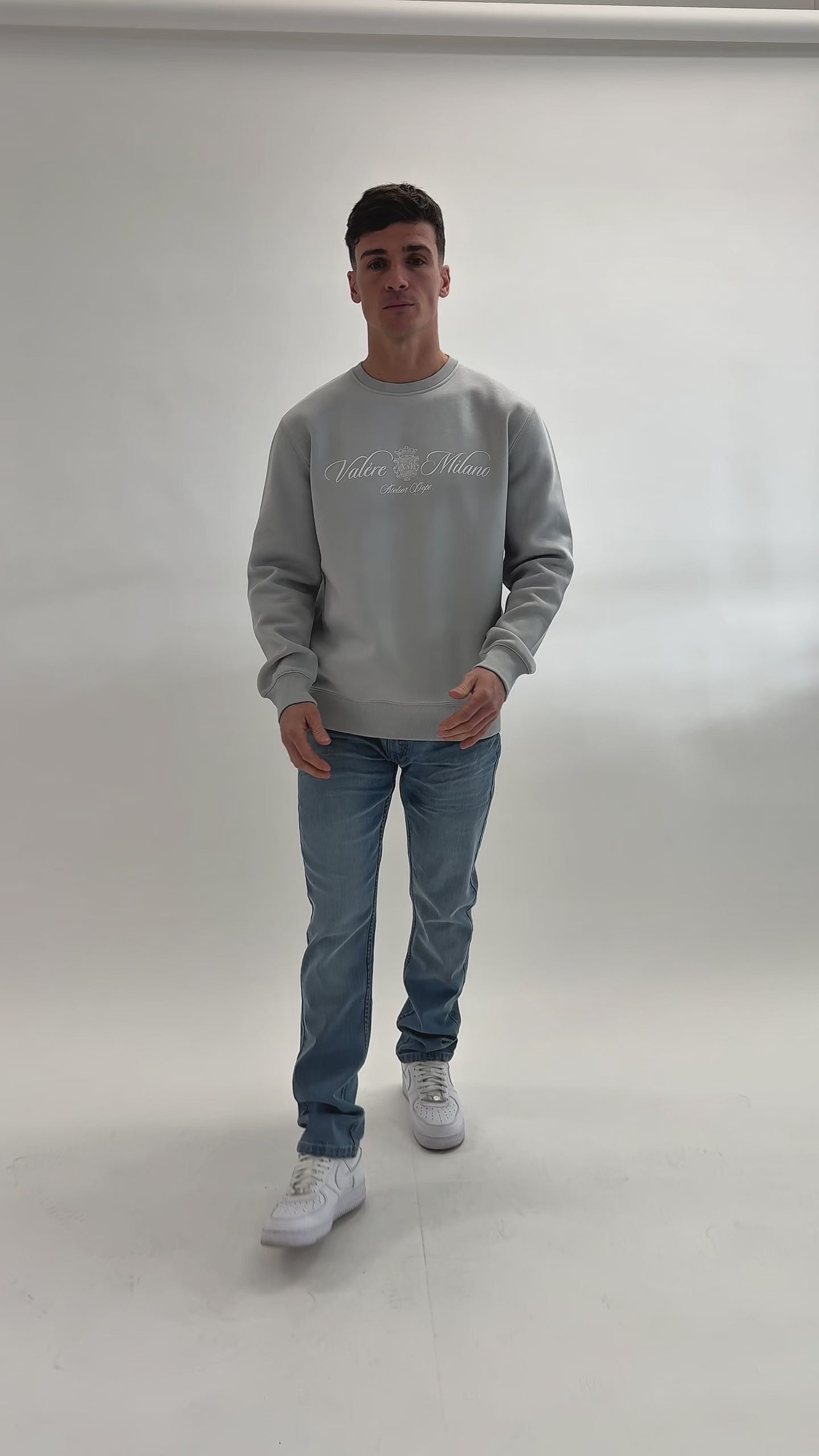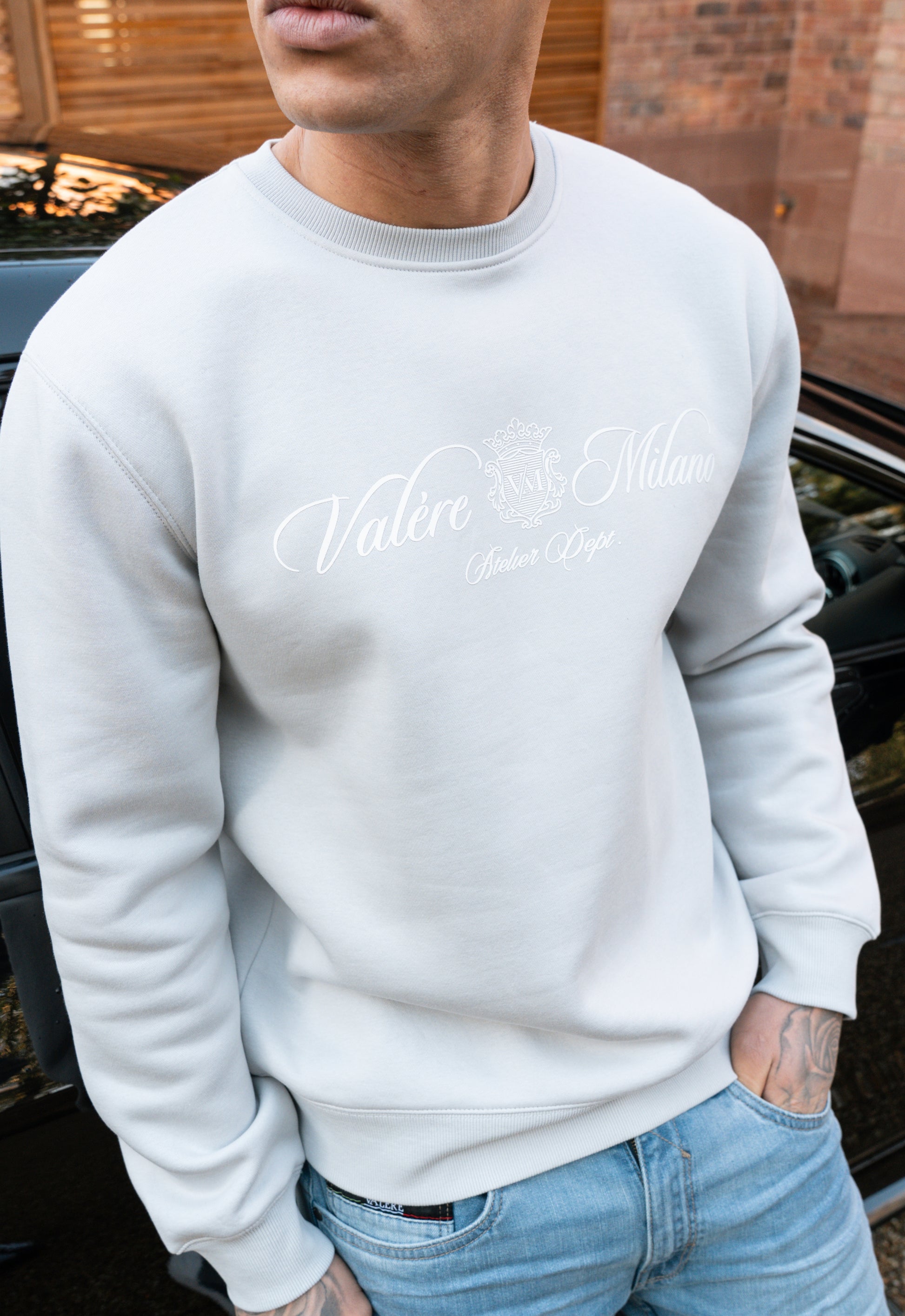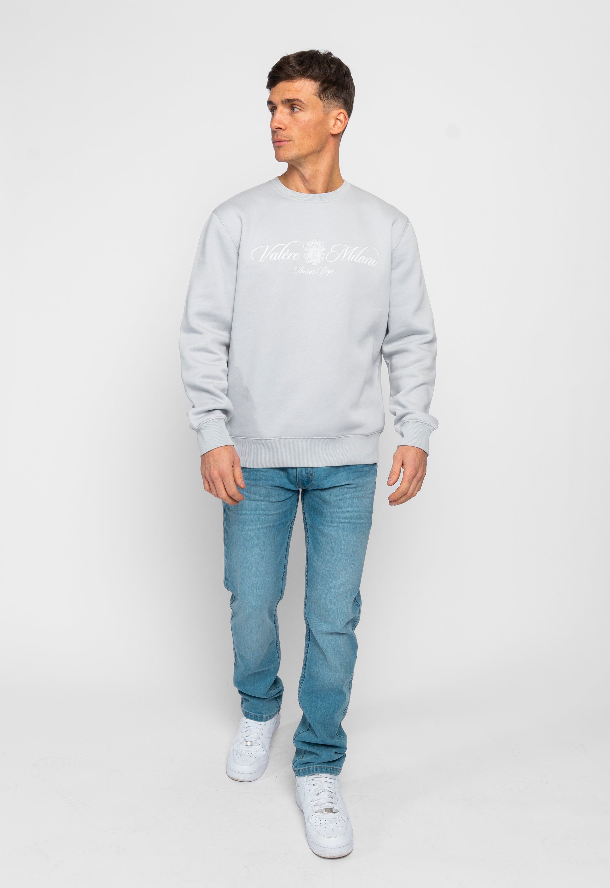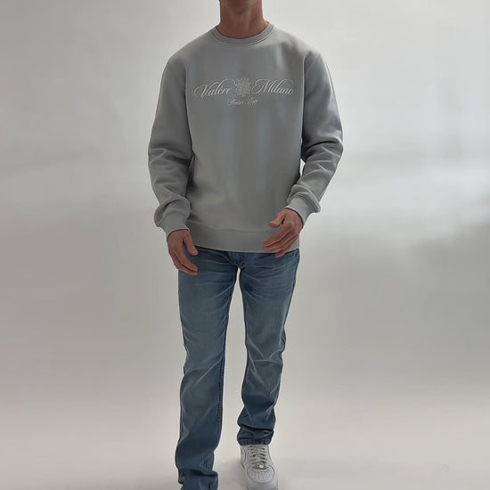 Grey crew sweatshirt with branded print