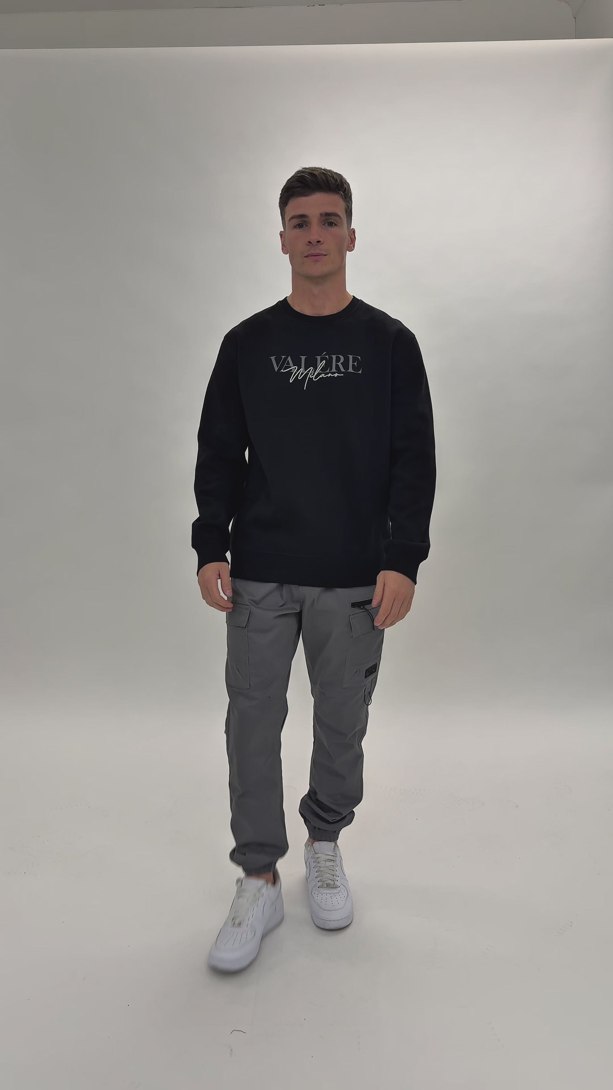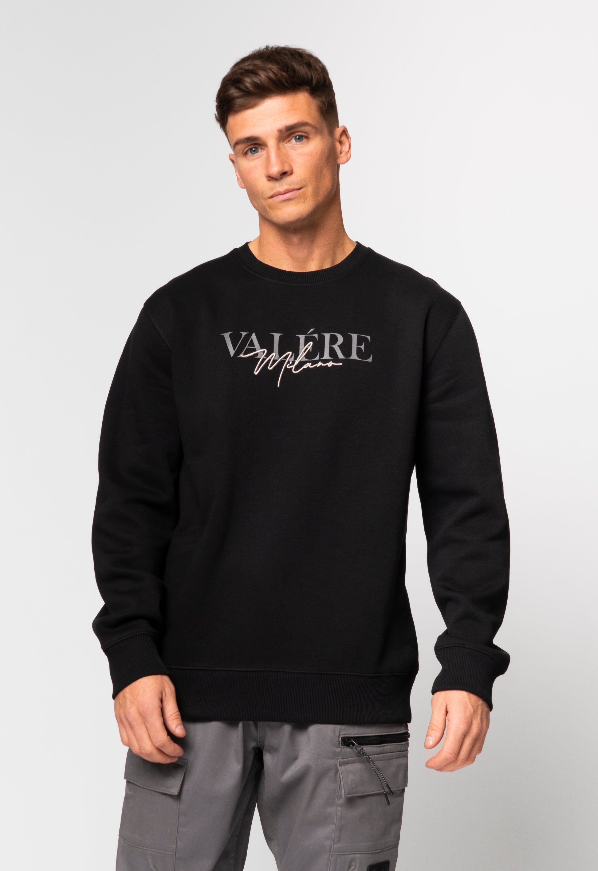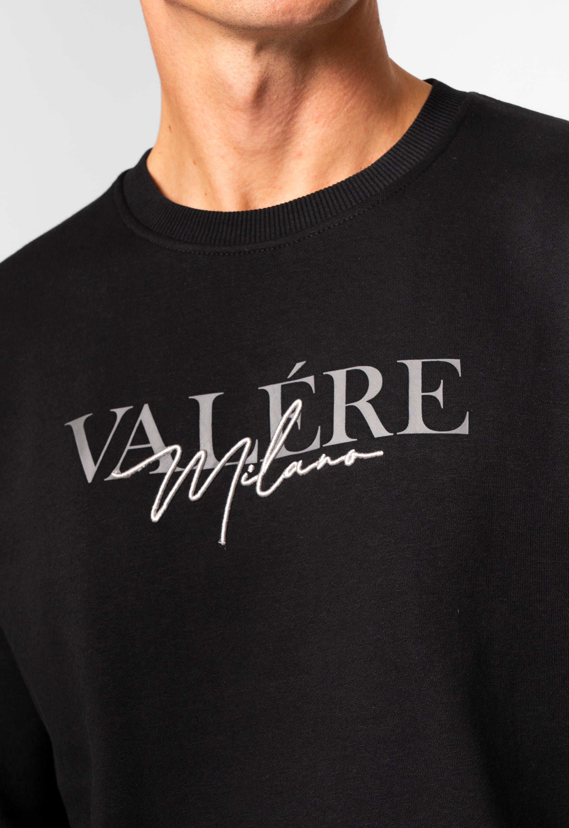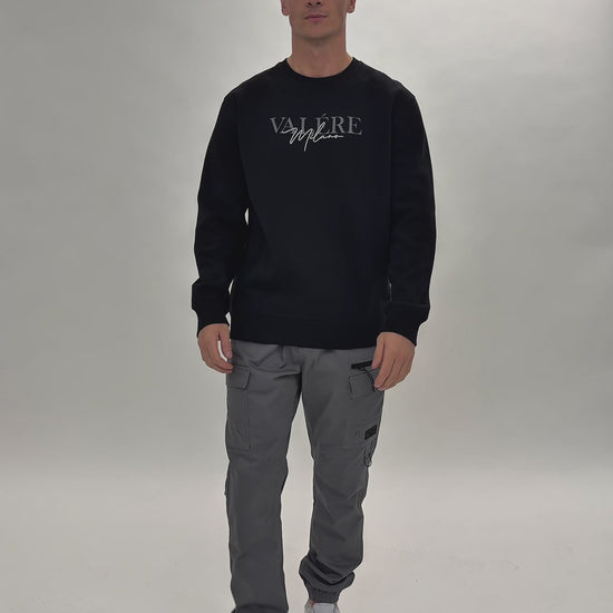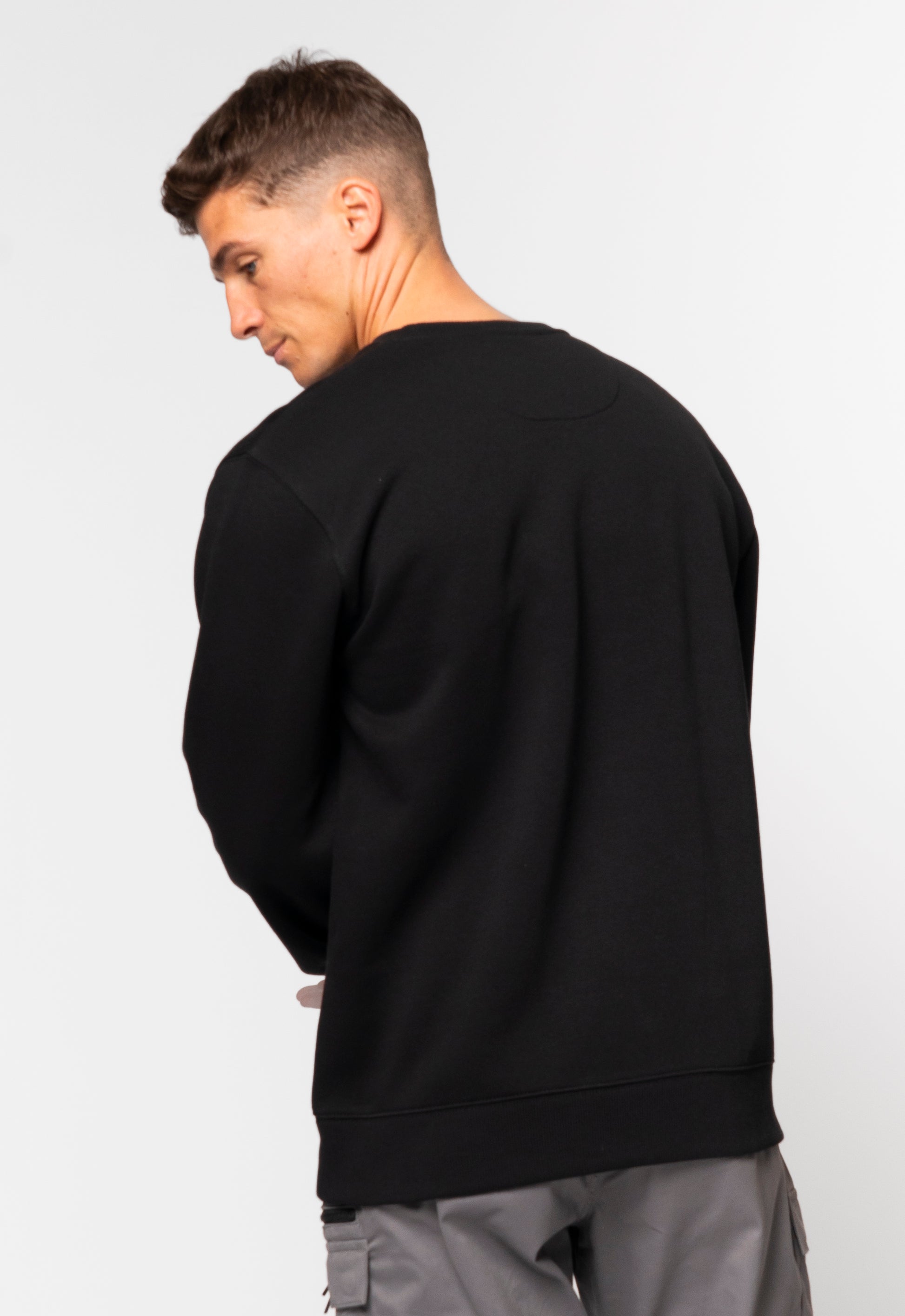 Black crew sweatshirt with branded print and Metallic 3D embroidery
