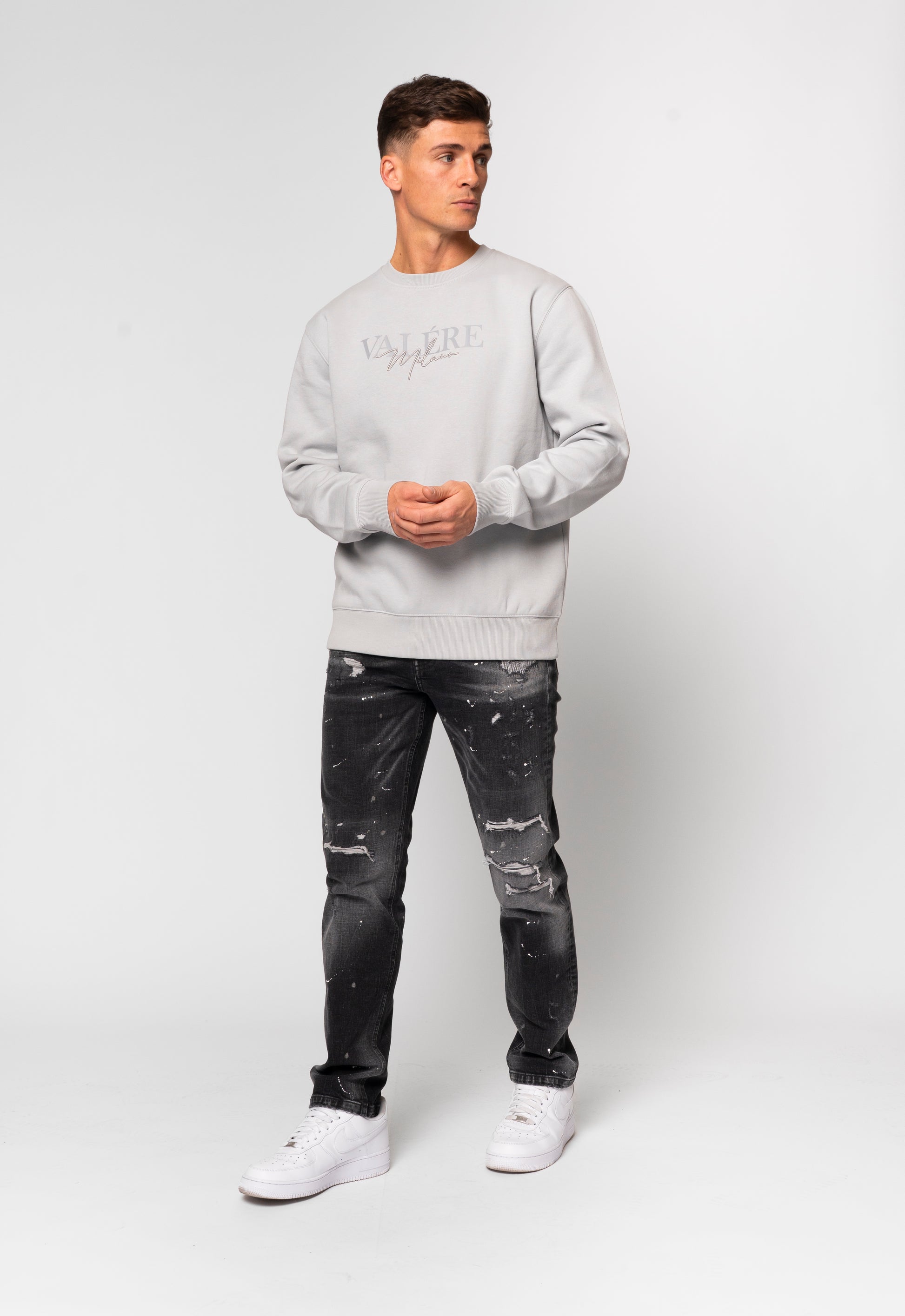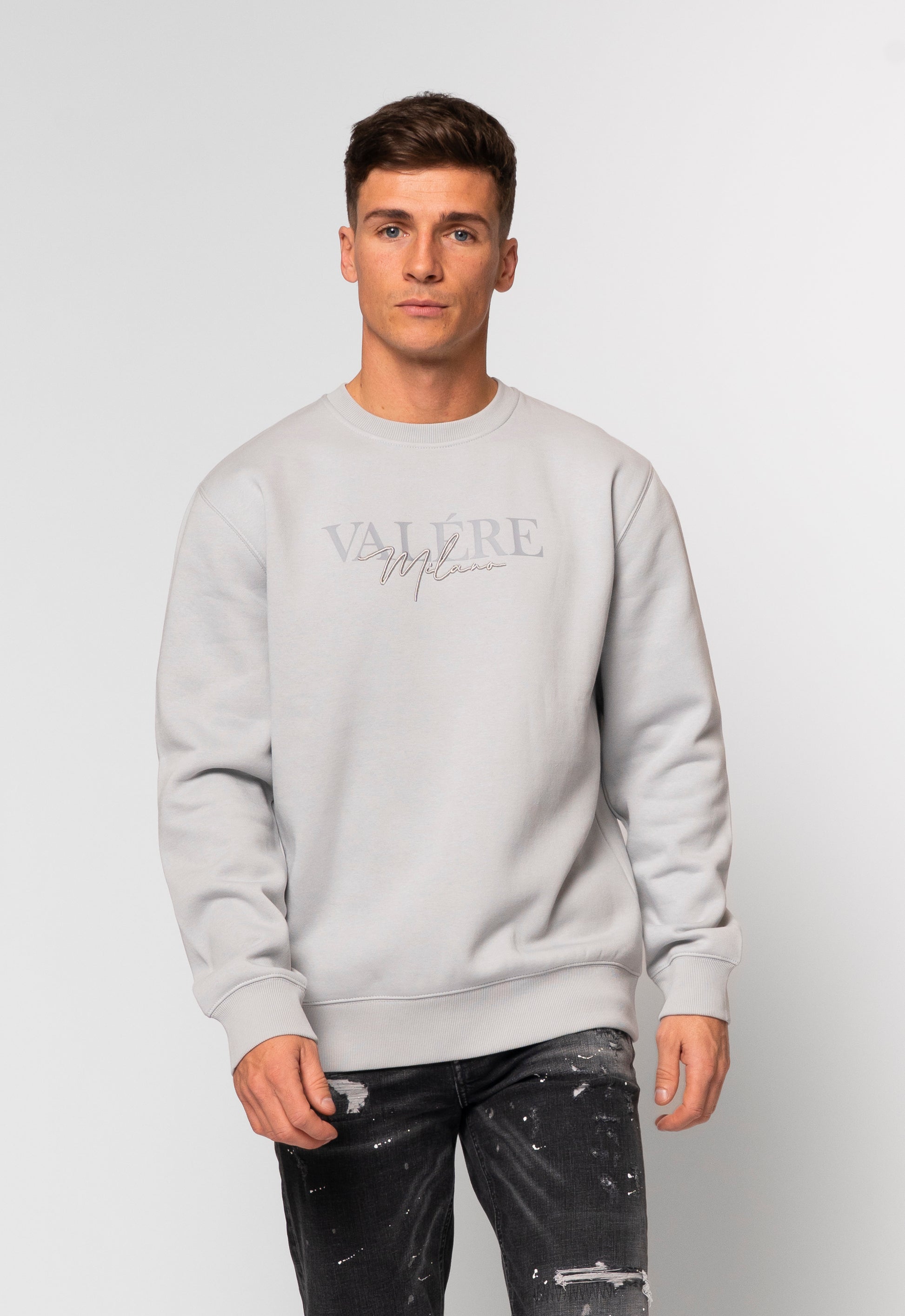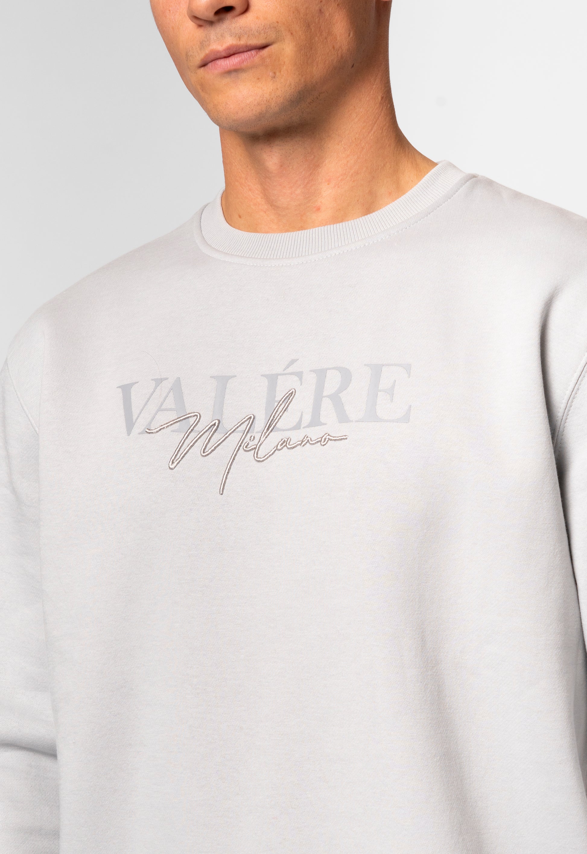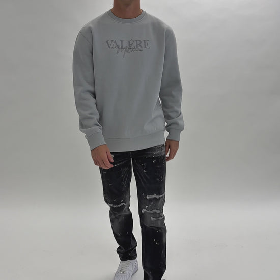 Grey crew sweatshirt with branded print and Metallic 3D embroidery