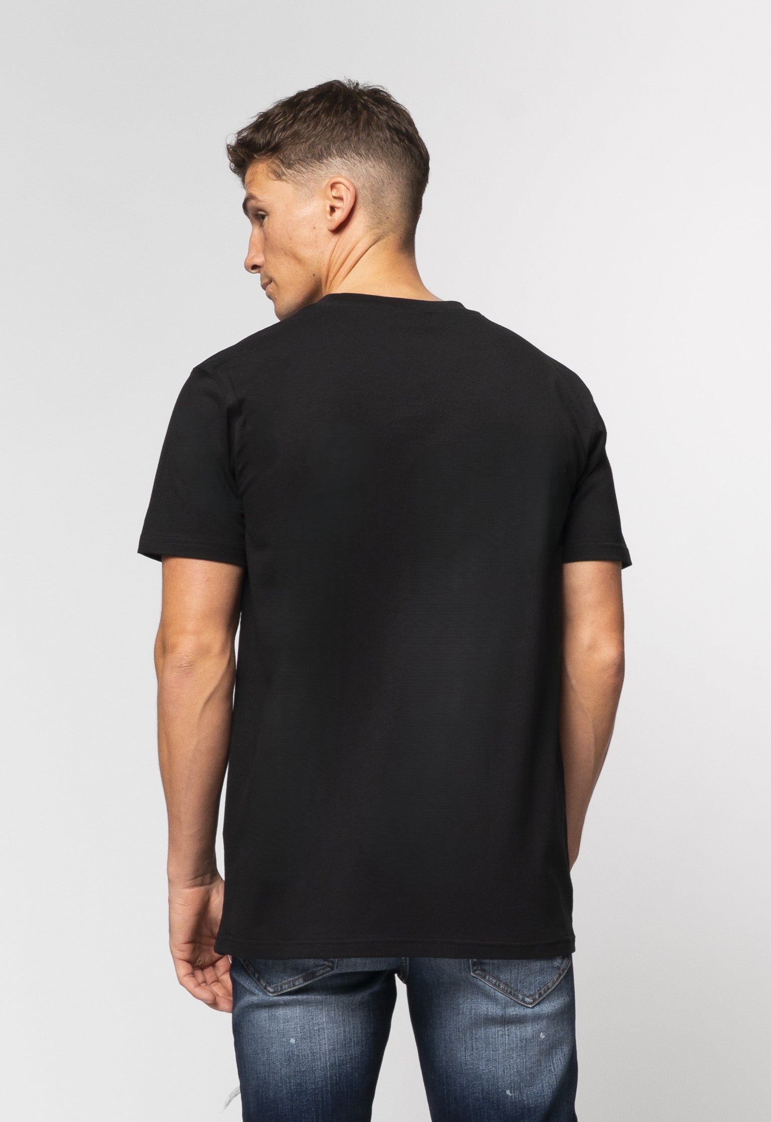 Black tee with flat soft touch branded print and diamantes.